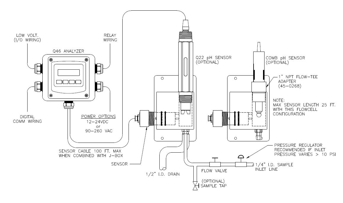 標準型號 Q46H/64 系統包括三個主要組件:Q46H 分析儀、恒壓頭流通池和臭氧傳感器。密封流通池也可用于可以仔細控制樣品流速和壓力的應用。圖 1 顯示了一個典型的安裝。